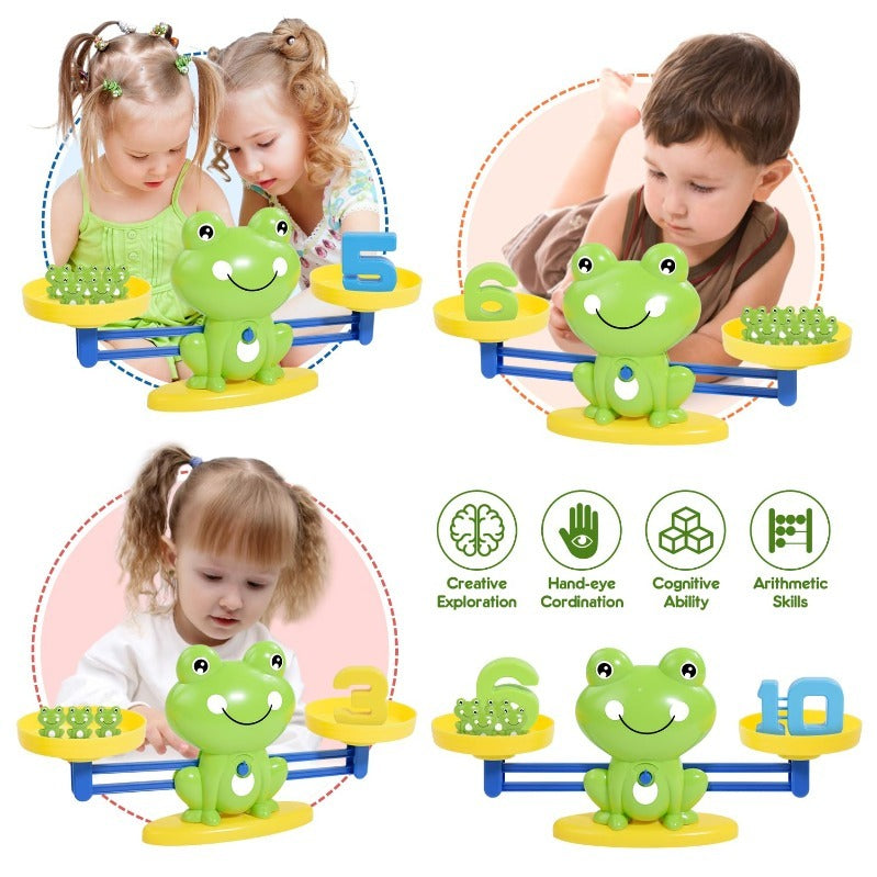 Dit balansspel leert kinderen cijfers begrijpen in plaats van uit het hoofd leren. Door kikkers te plaatsen tegenover cijfers zien kinderen wat een getal écht betekent.