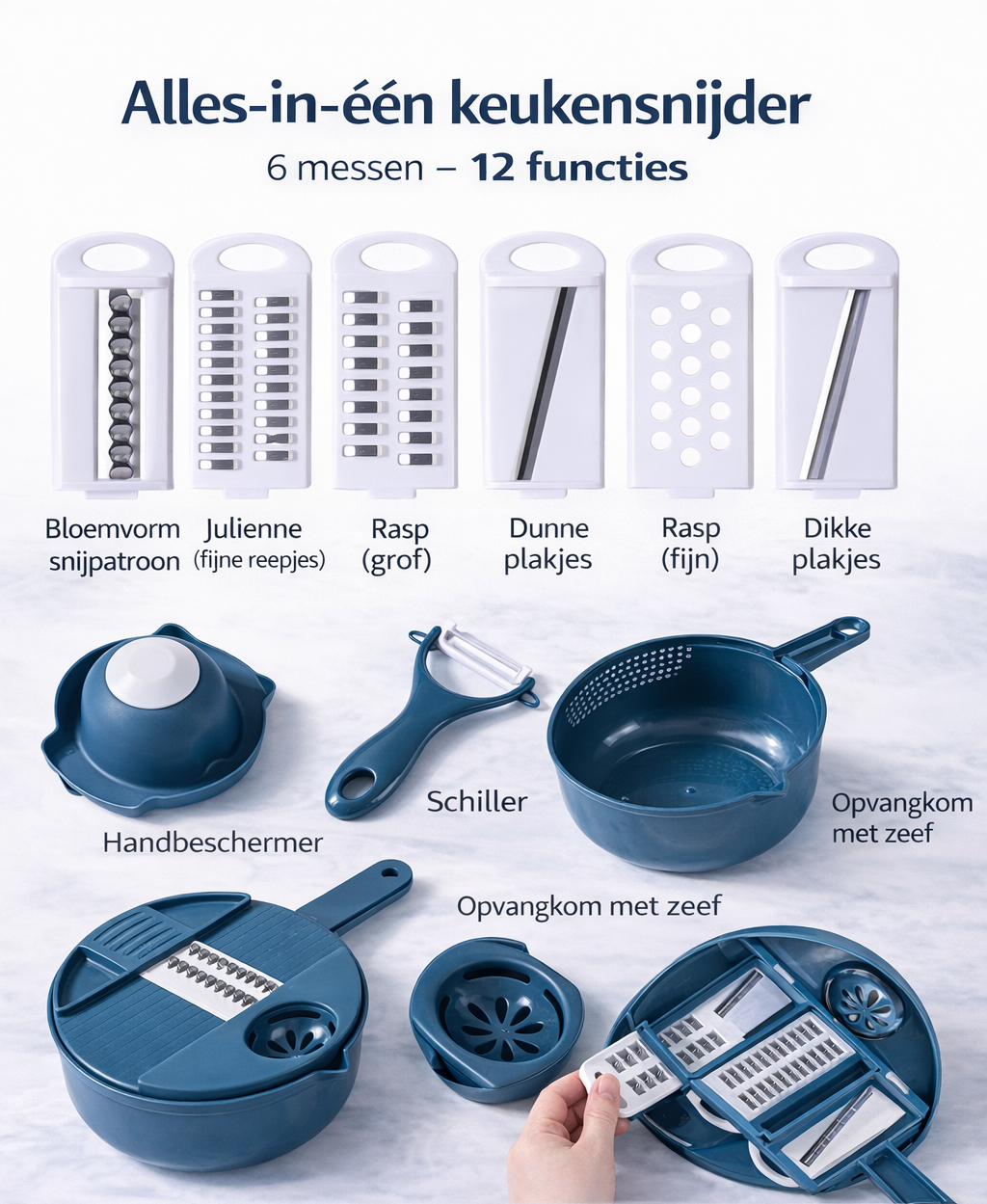 Met deze 12-in-1 Groentesnijder maak je in seconden klaar wat normaal minuten duurt